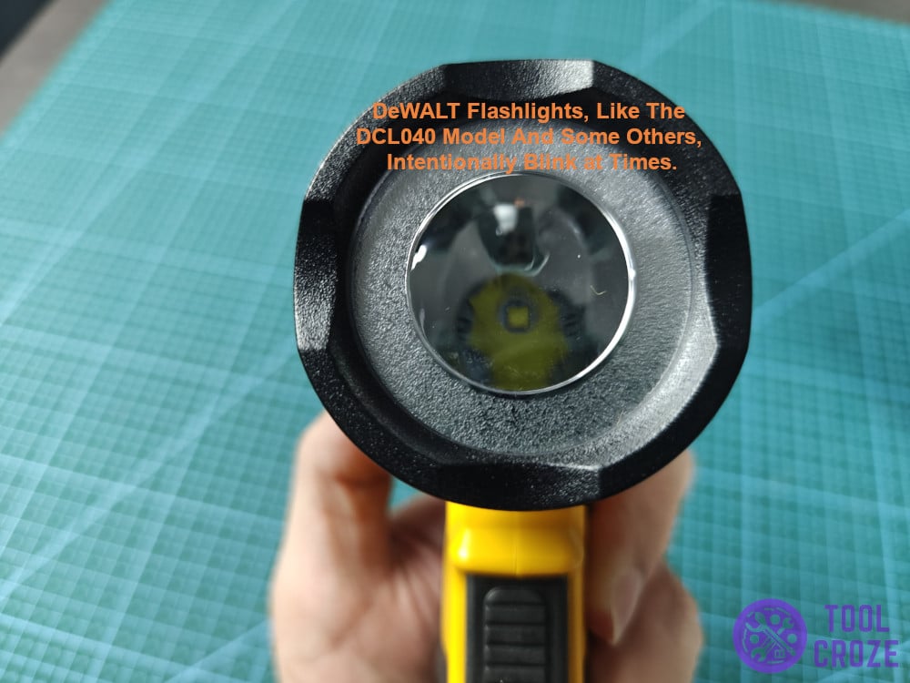 DeWALT flashlights, like the DCL040 model and some others, intentionally blink at times. When they do so, they’re letting the users know that the light was on for too long.